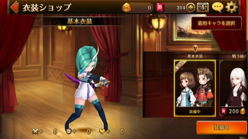 キャラクターにはそれぞれ衣装が用意されており、着せ替えることができます